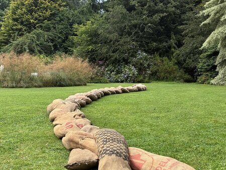 La tresse, festival du Lin, 25 m, toile de jute, résidus de jute, avec l’aimable participation du Tissage du Ronchay, Juillet 2025